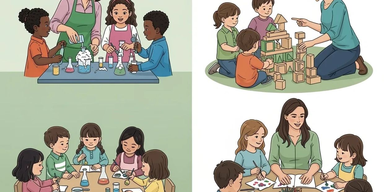 Preschoolers engage in structured learning through play, developing social skills, early literacy, and creative expression in a supportive environment.